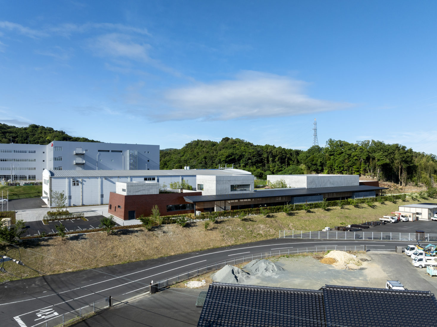 This is a new building project for JST Group Shimane Denki, located in Oda City, Shimane Prefecture. The site is a rectangular plot of land to the north of the existing factory, and the building will consist of offices, a factory, testing rooms, a canteen, and a refreshment area. We tried to make the building look and feel a certain way. We wanted it to be solemn and grand, like the traditional Iwami Kagura (a traditional performance art in Shimane), a place of work that would feel like a second home and make people want to go to work, and a way of working that is unique to Shimane, so we created a space with a clear contrast between the inside and outside of the building.