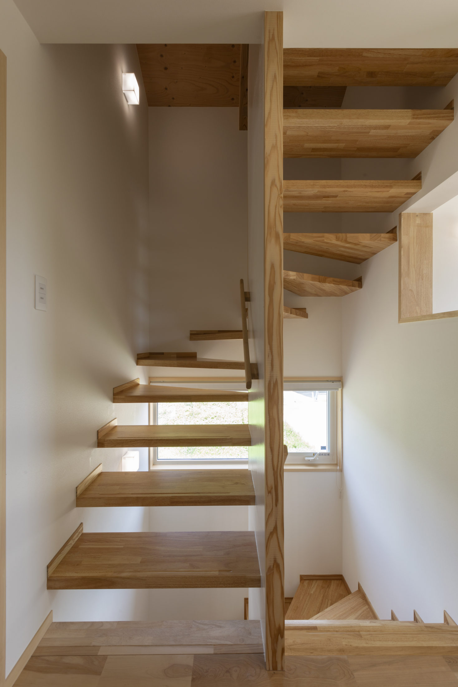 島田の家は安来市の干拓地のほとりにある、大小3つの勾配屋根が特徴的な住宅です。自然豊かな風景と昔からある集落に囲まれた土地だからこそ、周囲の家並みと調和する景観の家としました。